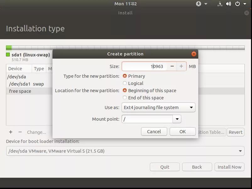 自定义磁盘分区安装 Ubuntu