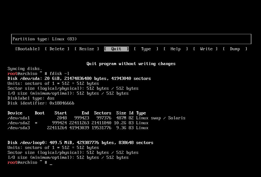 退出 Arch Linux 的‘cfdisk’