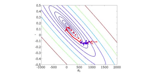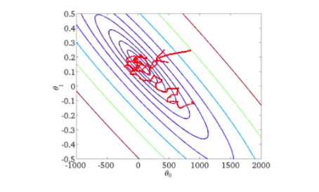 随机梯度下降是通过每个样本来迭代更新一次,如果样本量很大的情况(例如几十万),那么可能只用其中几万条或者几千条的样本,就已经将theta迭代到最优解了,对比上面的批量梯度下降,迭代一次需要用到十几万训练样本,一次迭代不可能最优,如果迭代10次的话就需要遍历训练样本10次。但是,SGD伴随的一个问题是噪音较BGD要多,使得SGD并不是每次迭代都向着整体最优化方向。