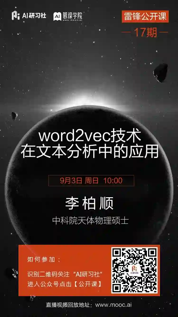 识别下方二维码,关注 AI 研习社(okweiwu),进入公众号,点击【公开课】进入直播,9 月3 日(周日)10:00 活动准时开始!