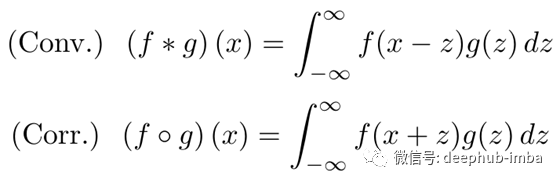 在本文前面,我们通过在傅立叶空间中获取内核的复共轭来实现互相关。这有效地扭转了内核的方向,现在我想证明为什么。首先,请记住卷积和互相关的公式: