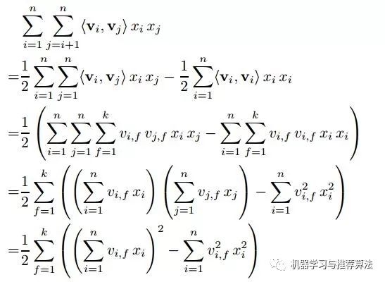 为了捕捉特征与特征之间的高阶联系,最直观的想法是用嵌套循环来对所有的特征进行两两组合,新的组合特征用权重 来区分各自的重要性: