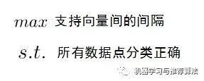 确定了损失函数,那么接下来,第一件事就是找支持向量到超平面的间隔(数据点距离超平面最近的点所构成的直线与超平面的距离),于是