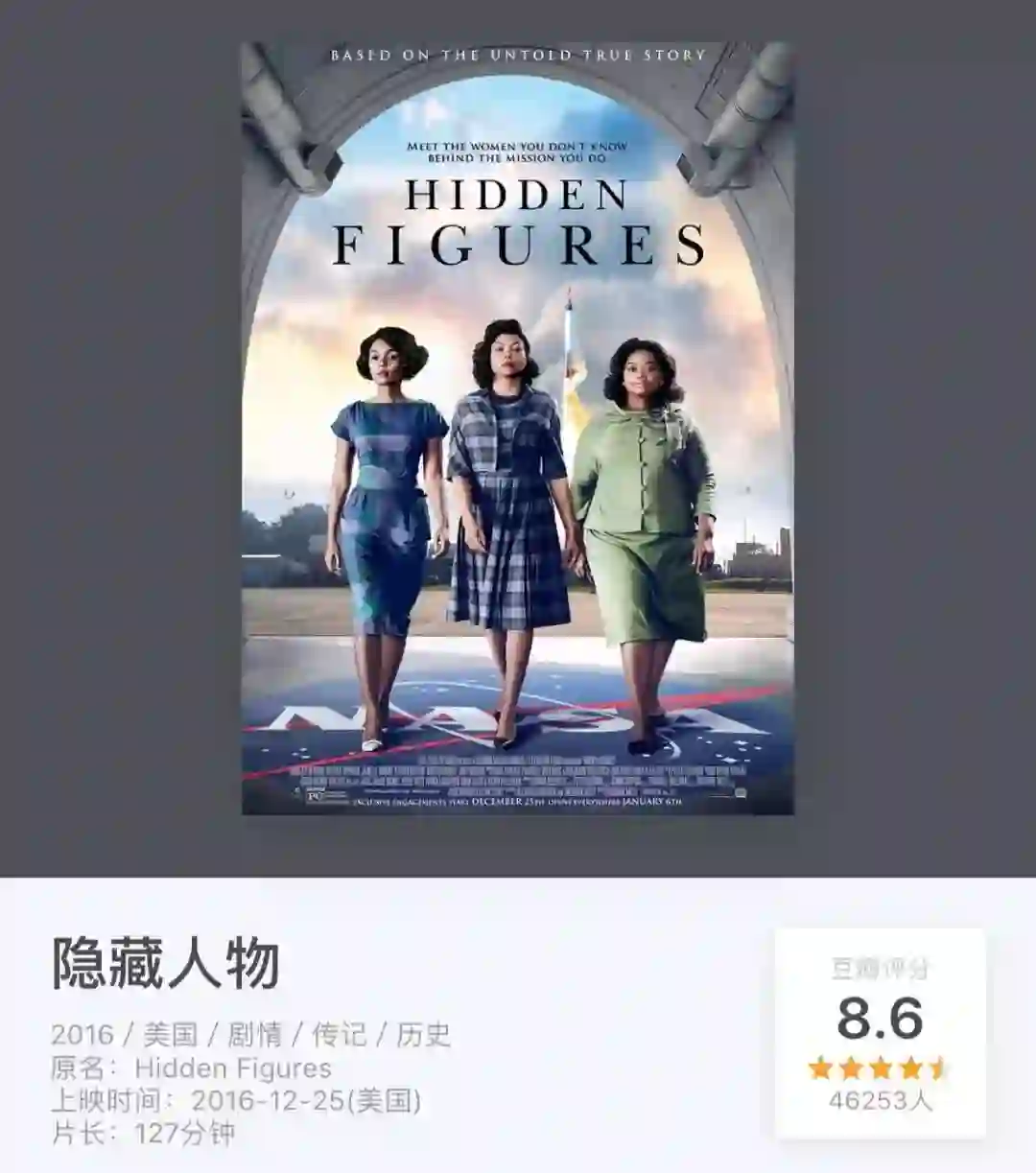 但最终,她们凭借着自己的才能和毅力得到了周围人的认可和尊敬,成为了名字被写进美国航天史与种族平权运动历程中的英雄。