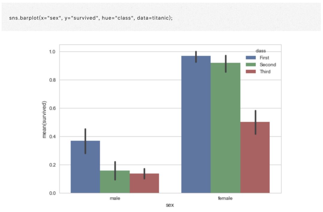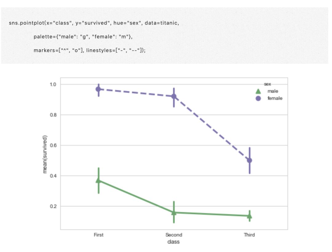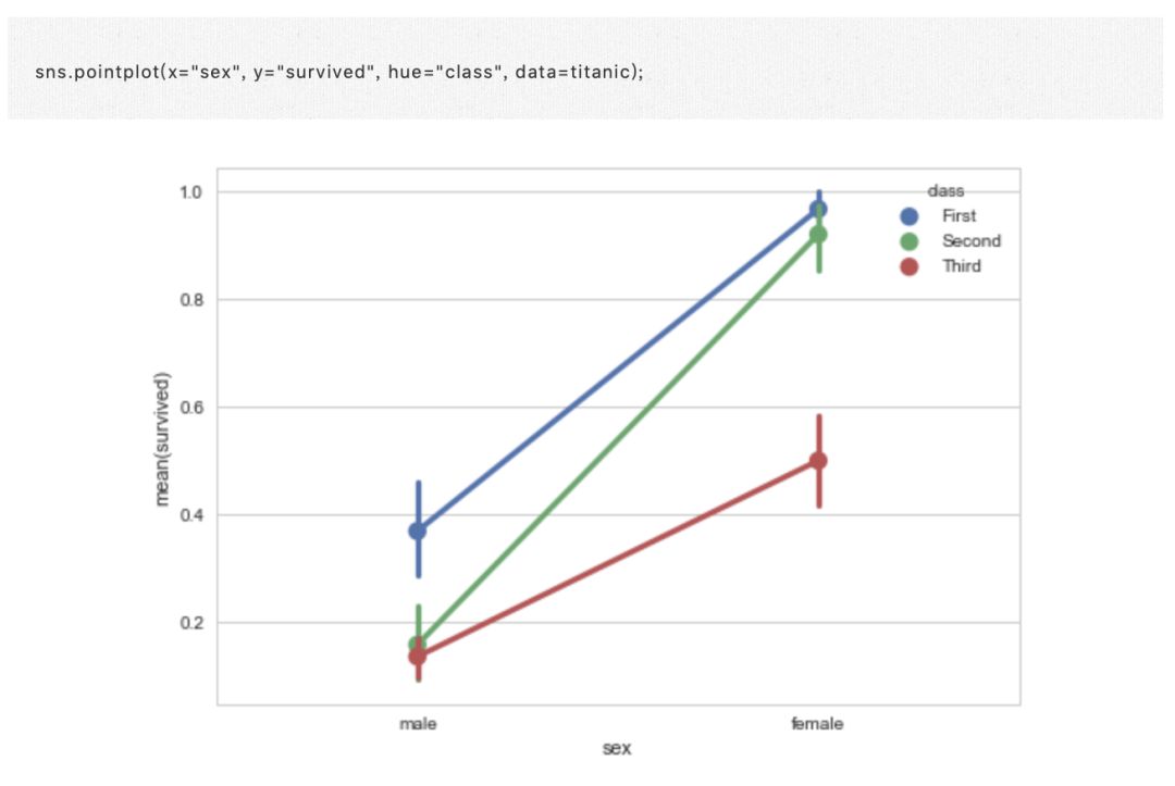 · 第三个包括函数 barplot() 和 pointplt()