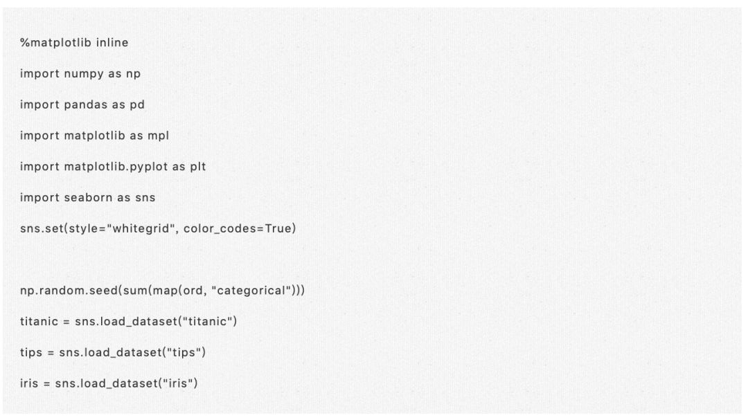 我们之前探讨了如何使用散点图和回归模型拟合来可视化两个变量之间的关系,以及如何在其他分类变量的层次之间进行展示。 当然,还有一大类问题就是分类数据的问题了? 在这种情况下,散点图和回归模型方法将不起作用。当然,有几个观察可视化这种关系的选择,我们将在本章中讨论。