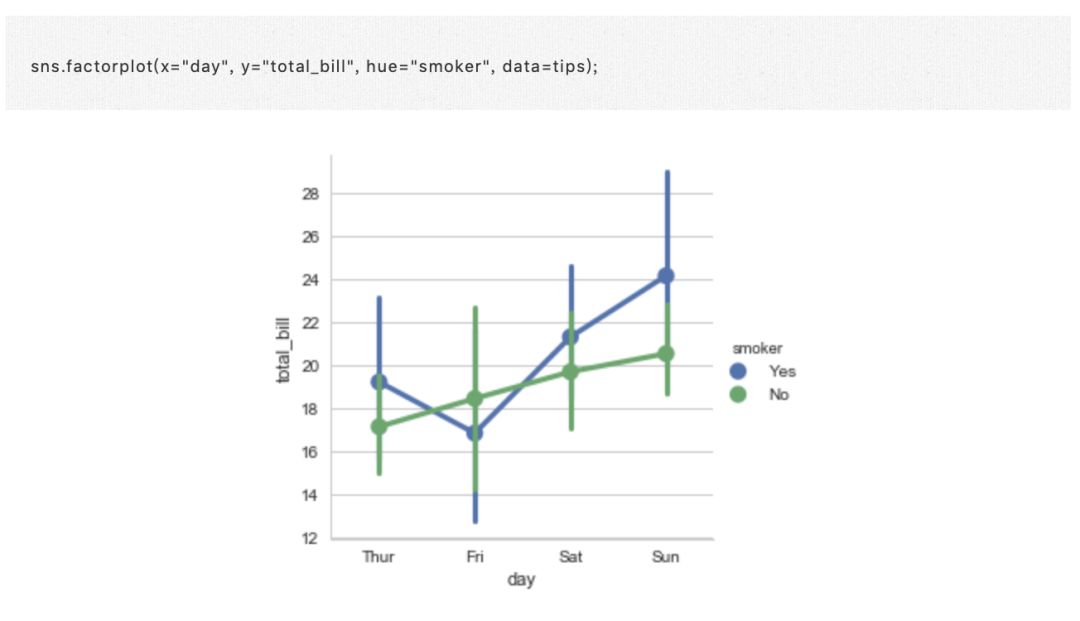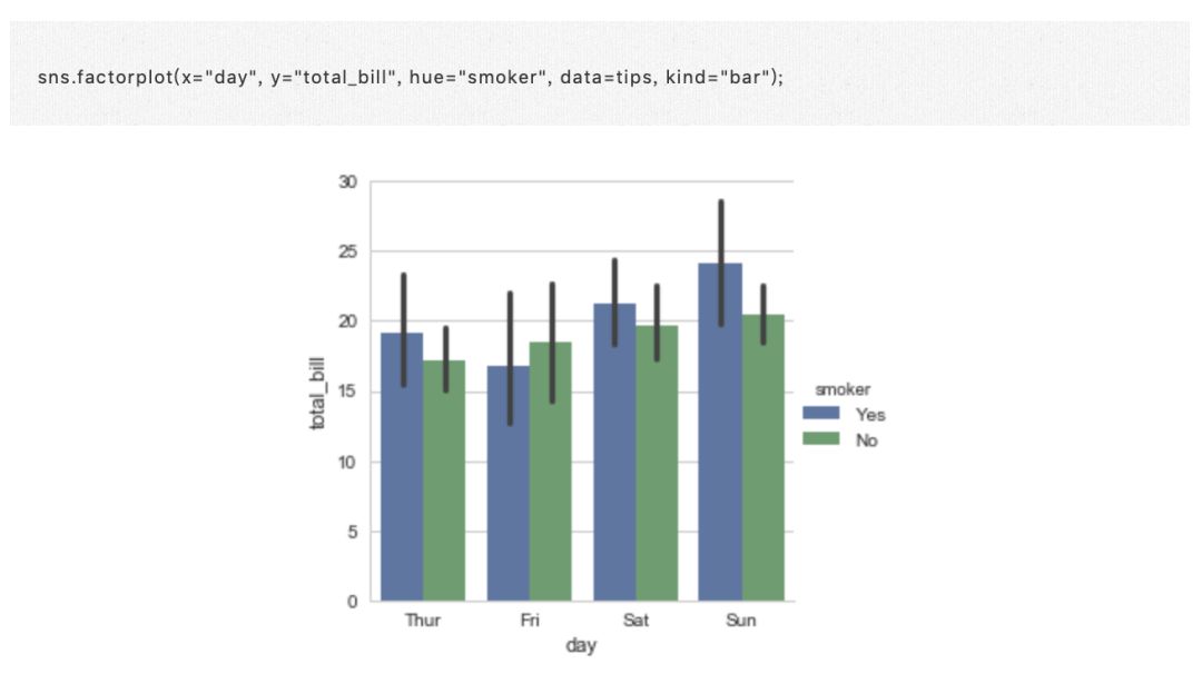 备注:你甚至可以理解为这一章都是在具体学习 factorplot() 函数,快速、直接、功能强大的绘图函数谁不爱?