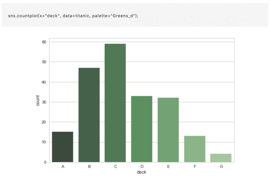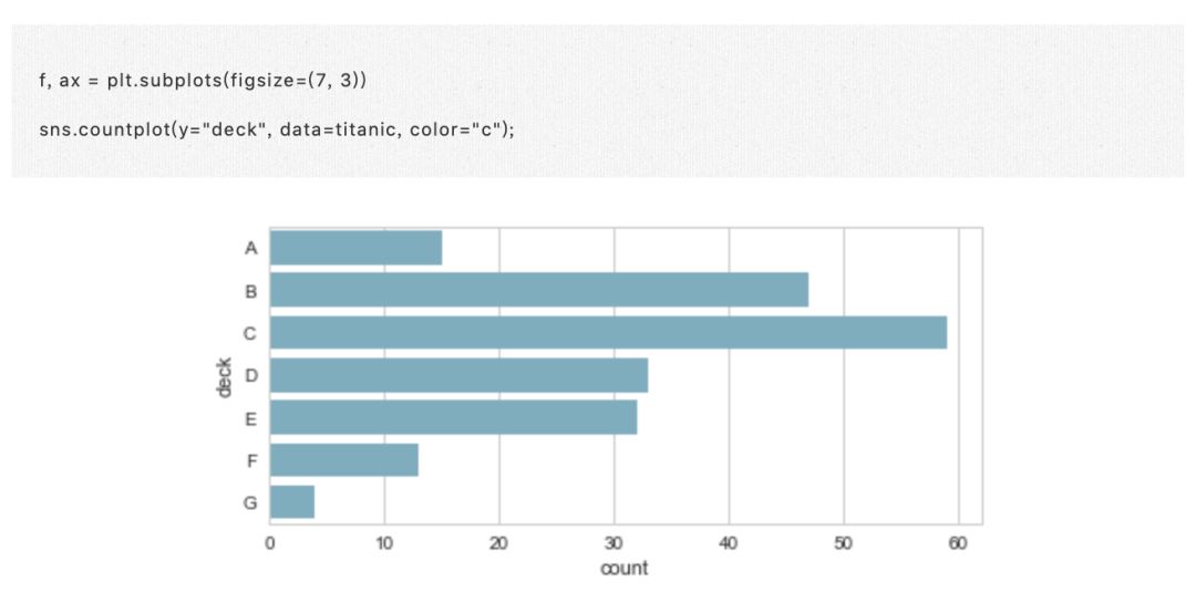 条形图的特殊情况是当您想要显示每个类别中的观察次数,而不是计算第二个变量的统计量。这类似于分类而不是定量变量的直方图。在 Seaborn 中,使用 countplot() 函数很容易绘制: