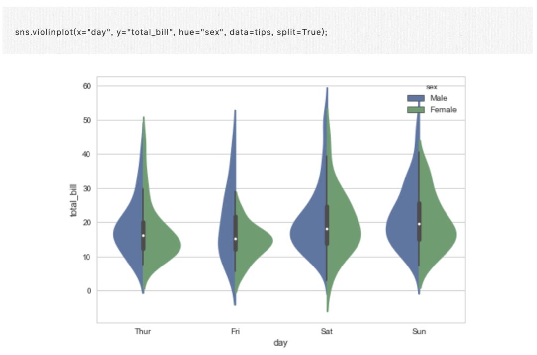 当色调参数只有两个级别时,也可以传入参数 split 至 violinplot(),这样可以更有效地利用空间: