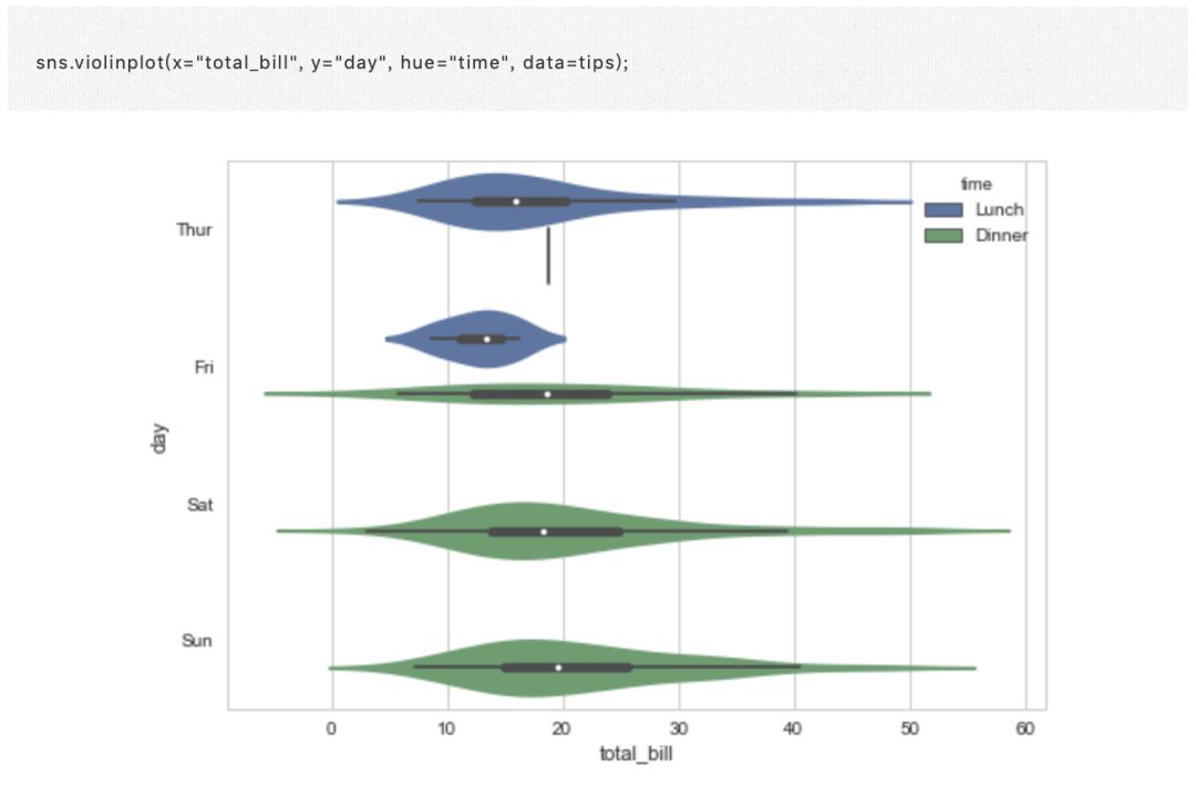 使用这些图,将分类变量放在垂直轴上是非常有用的(当类别名称相对较长或有很多类别时,这一点特别有用)。 您可以使用 orient 关键字强制定向,但通常可以从传递给 x 和 / 或 y 的变量的数据类型推断绘图方向: