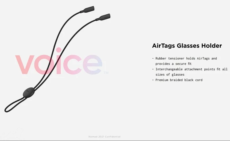 爆料者Evan Blass表示,以生产iPhone保护壳和充电器闻名的Nomad公司,将推出AirTags钥匙链和AirTags眼镜架。虽说苹果一般不会在产品推出之前向配件公司透露细节,但这家公司所制作的渲染图仍有一定的可信性。