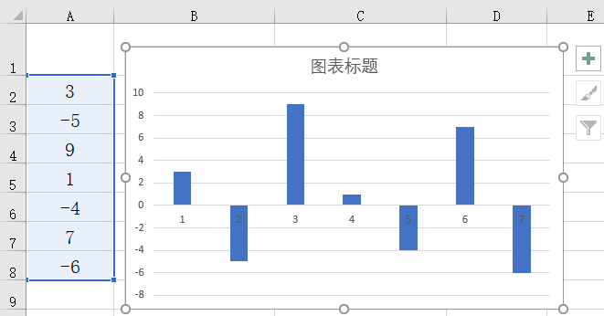 在自动生成的柱形图中,对正数和负数填充的是相同颜色,而对于需要展示的图表而言,正数和负数最好能以不同的填充颜色进行填充,本例介绍一种快速实现正负数填充不同颜色的方法。