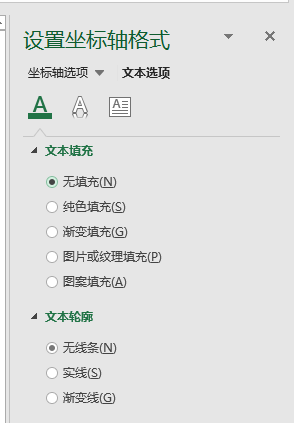 (3)右键单击“横坐标”选择“设置坐标轴格式”,单击“文本选项”中的“无填充”;