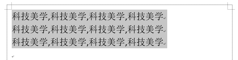 打开文档,为文本添加段落标记和英文半角逗号,选中要转换成表格的所有文本;