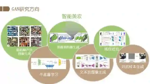 总而言之,GAN由最开始的随机噪声生成图片,逐渐在众多领域得到发展。有研究者使用GAN研究半监督学习问题,也有研究者进行图像到图像的生成探索,如给定轮廓图生成正常的图片,另外还有文本到图像的生成以及域自适应任务。域自适应任务旨在提升模型对跨域数据的泛化能力,如在一个数据集上训练好图像分析的模型,通过域适应的方法,在其他不同的数据集上仍然能够表现出较强的能力。此外还有人用GAN来做对抗样本的攻防,旨在解决生成模型的正确性和安全性的问题。
