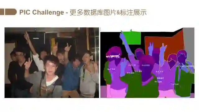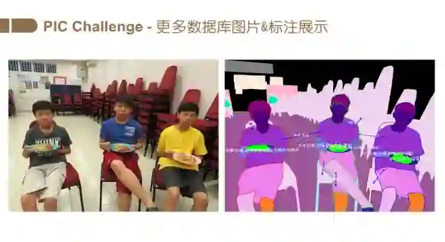 Person In Context (PIC) 2018 (http://www.picdataset.com/) 将于2018年9月9日在德国慕尼黑的ECCV 2018的workshop "1st Person in Context (PIC) Workshop and Challenge" 上举办。我们从真实场景收集了约1.5万张图像,平均每张图包含4个人。这些图像包含复杂的人的姿态、丰富的拍摄视角、不同程度的遮挡和图像分辨率。每一张图片都包含了人和物体像素级别的语义分割、场景分割以及人和人/物体的关系标注。在客观世界不计其数的类别中,人是最特殊的一类。因此本竞赛在任务设定过程中,着重考量了以人为中心的关系分割 (relation segmentation)。传统的关系预测,比如Visual Genome,以及Google 的Open Image Challenge 的关系都是定义在矩形框(bounding box)上的。PIC竞赛的特别之处是,其关系是定义在分割区域(segmentation)上的。