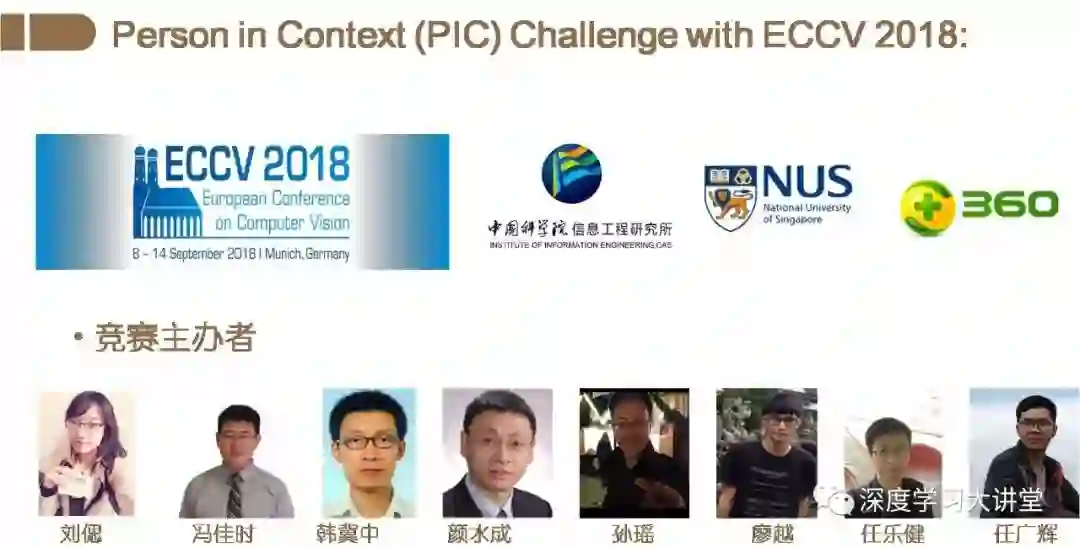 最后一个任务是综合考虑到人和场景。今年ECCV的一项竞赛就是我们和奇虎360公司以及新加坡国立大学(NUS)一起举办的。比赛的主要任务还是集中于人这一目标,希望能够获取图像中最重要的元素——人的信息。