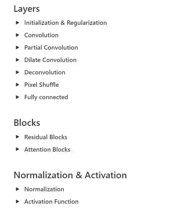 目前整个项目包含 20 种代码块,它们可用于快速搭建深度学习模型: