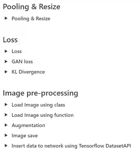 在这个项目中,作者重点突出这是一份易于使用的 TensorFlow 代码集,它包括常见的正则化、卷积运算和架构模块等代码。该项目包含一般深度学习架构所需要的代码,例如初始化和正则化、各种卷积运算、基本网络架构与模块、损失函数和其它数据预处理过程。此外,还特别增加了对 GAN 的支持,这主要体现在损失函数上,其中生成器损失和判别器损失可以使用推土机距离、最小二乘距离和 KL 散度等。