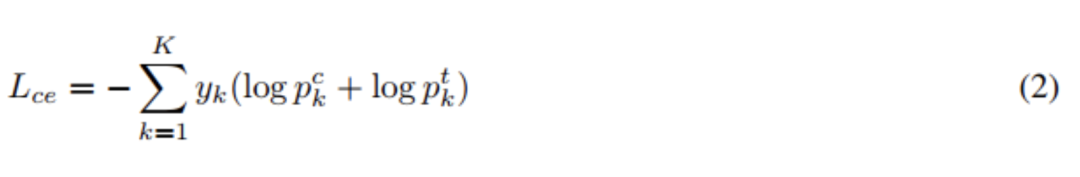 ,与类别标签构建交叉熵损失函数,实现分类训练,如下公式(2)所示。