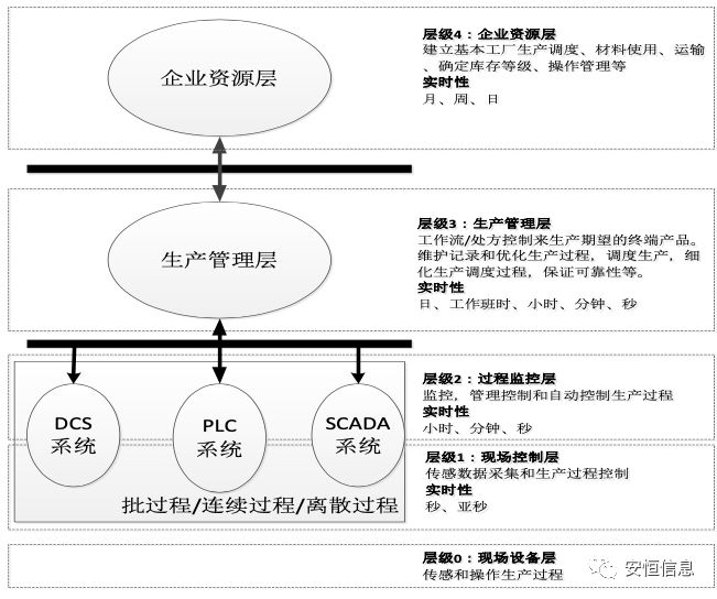 参考标准IEC 62264-1的层次结构模型划分,同时将SCADA系统、DCS系统和PLC系统等模型的共性进行抽象,我们可以将工业控制系统进行如下分层: