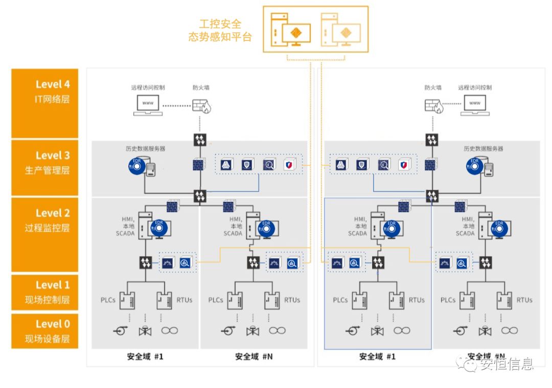 安恒信息依托多年在工业控制领域的积累和实践,针对等保2.0的技术要求变化,重点布局工业控制系统在安全通信网络、区域区域边界、安全计算环境、安全管理中心及安全运维管理等多方面的防护能力,提出了一体化的解决方案。