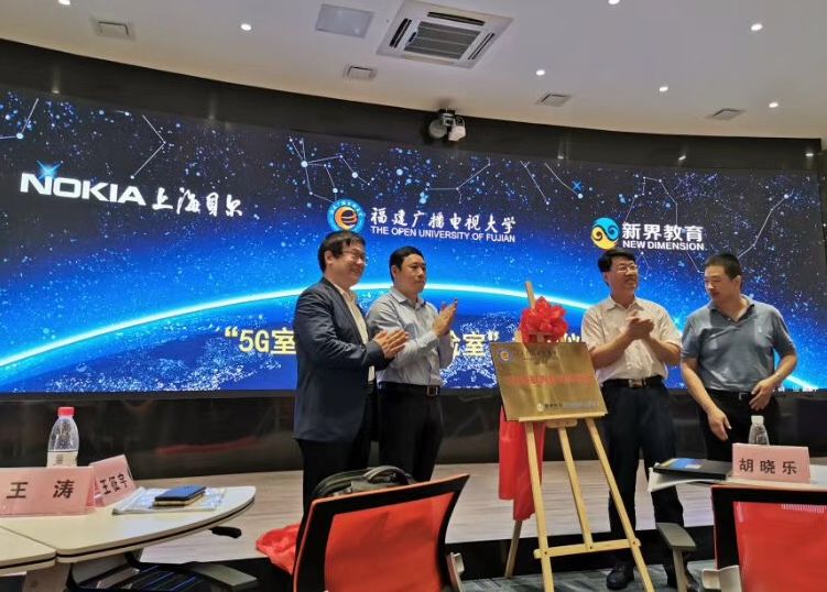会议期间,福建广播电视大学、上海诺基亚贝尔股份有限公司、北京新界教育公司三方在福建广播电视大学建立5G室联网联合实验室的揭牌仪式。相关领导参加了签字和揭牌。