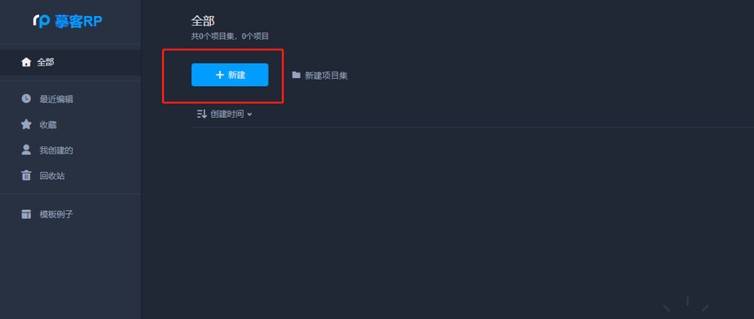 登录后进入摹客RP工作台,点击新建项目,选择所需尺寸,进入产品体验。