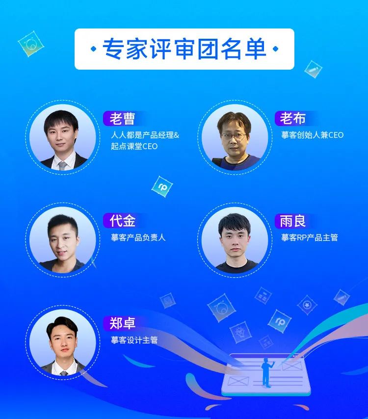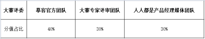 复评:将由摹客官方团队、大赛专家评审团队、人人都是产品经理媒体团队三方分别进行,最后由主办方核算所有参赛作品的综合得分。
