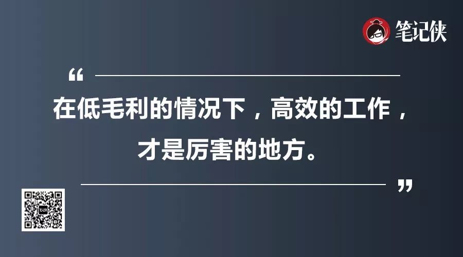 在低毛利的情况下,怎么高效率的工作才是厉害的地方。