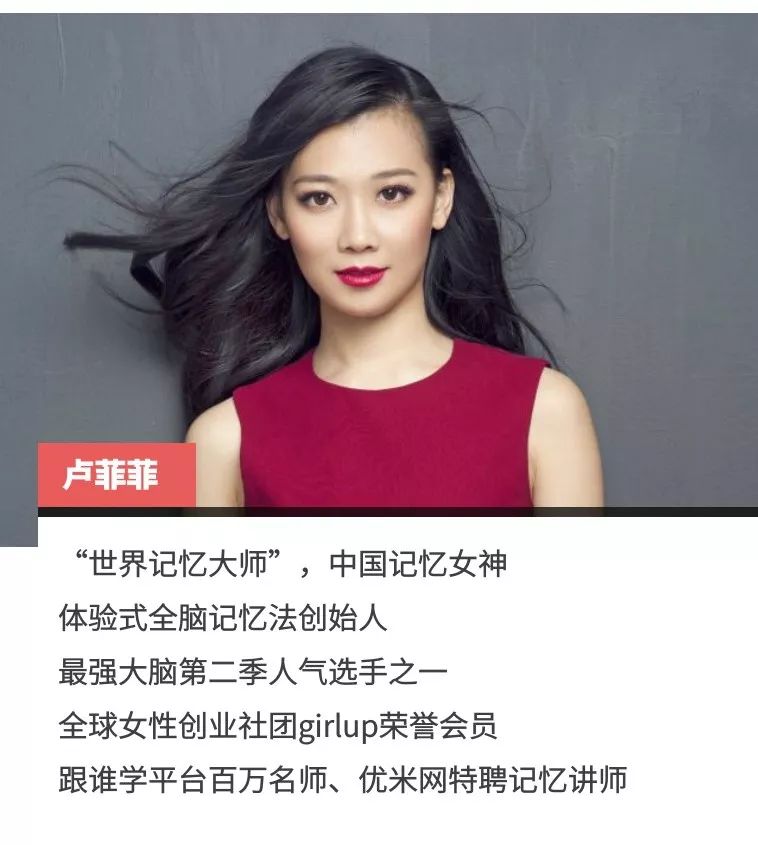 除了《最强大脑》顶尖选手,卢菲菲身上还有个更耀眼的标签:“世界记忆大师”。