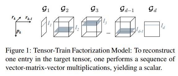 该论文由西门子公司与德国慕尼黑大学联合发表,通过Tensor-train Decomposition的方式分解Input-to-hidden矩阵,以处理RNN中高维度的输入信号,如视频建模(video modeling)任务。现阶段对视频类高维度的输入信号,都通过CNN操作将视频每一帧表示为一个特征向量,降低相应维度,后使用RNN建模时序信息。在UCF101等现有视频数据集上,该方法取得了与当前最优方法匹敌的结果,但是其计算复杂度远低于朴素的RNN。本文提出的Tensor-train Factorization可构建一个Tensor-train Layer替换Input-to-hidden的大矩阵,还可与RNN共同用端对端训练方式完成训练。