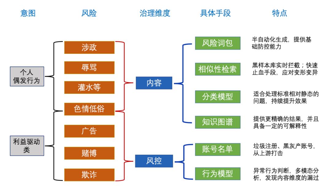 明确风险词包、相似性检索、分类模型、风险知识图谱 4种手段适合完成的任务,且相互配合。