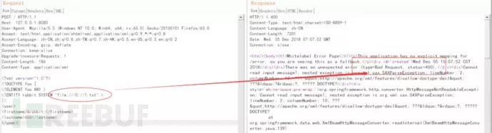 前者是我们xxe的必须条件,暂且不谈,但后者如果我们提交的数据并未通过返回包返回回来,我们也就看不到了。