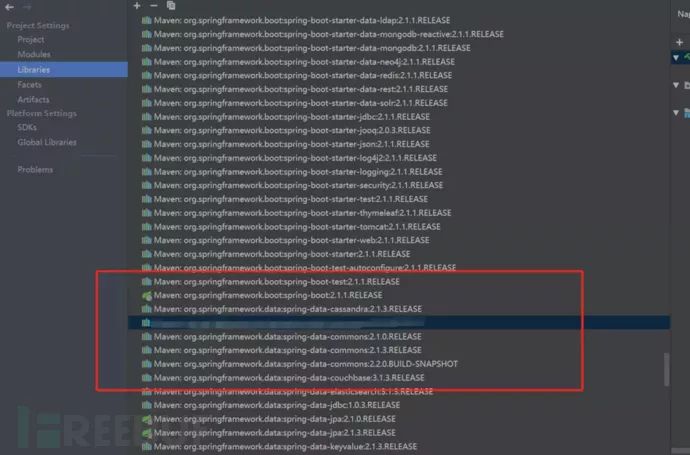 从官方的描述中我们可以看到,此漏洞主要出现在XMLbeam1.4.14之前的版本,同时要求Spring Data Commons 1.13至1.13.11以及2.0至2.0.6的版本,目前idea默认选择的spring boot2.1.1版本漏洞已修复,我们可以看到默认的Spring Data Commons版本为2.1.0以上。