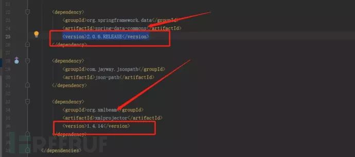 在这里说点经验之谈,我对不同版本进行了尝试,不知道是不是个人原因,我发现版本并没有按照官方提到的那样精确,比如这里如果spring-data-commons采用2.0.6版本, XMLBeam采用1.4.13版本,你会发现DTD依然是被禁止的。所以本次漏洞复现我选择了spring-data-commons2.0.6+ XMLBeam1.4.14的组合。