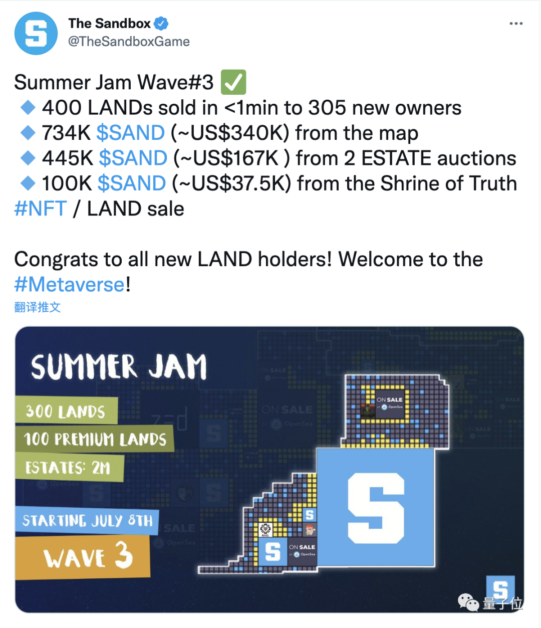 Sandbox曾经在推特上,公开拍卖过元宇宙房地产。400多个地块曾在一分钟内被抢光,售价从几万到几十万美元不等,简直比摇号买新房还夸张。