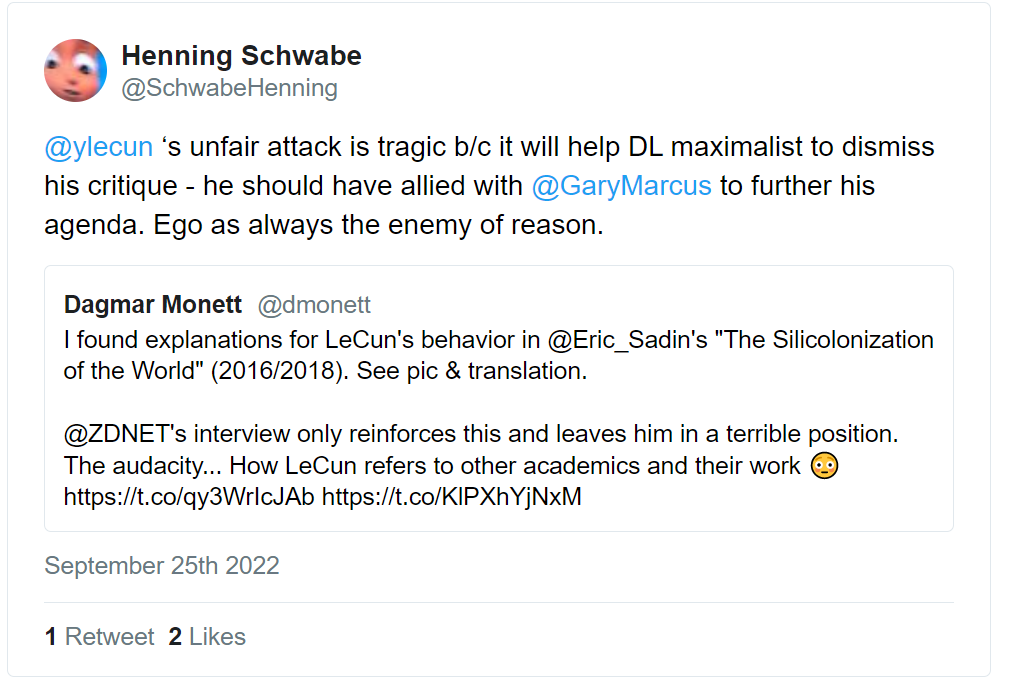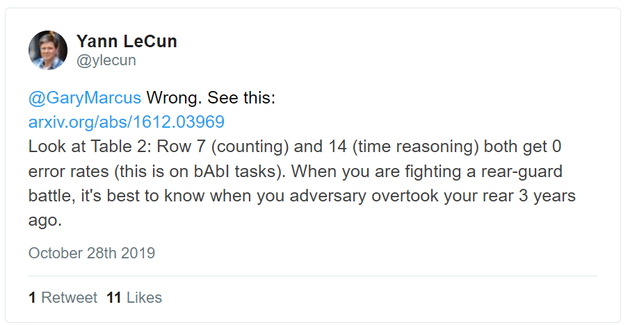 如果说上面这段属于是为自己争取Credit的话,Marcus博客后半部分的内容看起来就完全是针对LeCun本人了。