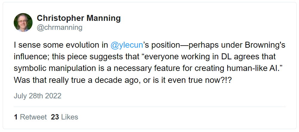 如今,LeCun却在认可符号操作了,并表现得好像之前的抨击不存在一样。