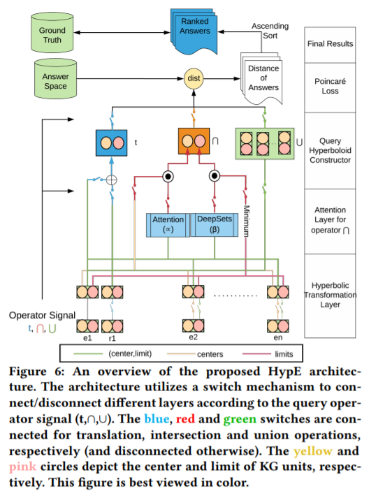 为了解决这些复杂的操作,在本文中,我们将KG表示学习表述为一个自我监督的逻辑查询推理问题,利用KGs上的翻译、交叉和并查询。我们提出了一种新的自我监督动态推理框架——双曲面嵌入(HypE),它利用KG上的一阶正存在查询来学习其实体和关系在Poincaré球中的双曲面表示。HypE将正面的一阶查询建模为几何平移、交叉和合并。对于真实数据集中的KG推理问题,所提出的HypE模型显著优于最先进的结果。我们还将HypE应用于一个流行的电子商务网站产品分类的异常检测任务,以及分层组织的web文章,并演示了与现有的基线方法相比,显著的性能改进。最后,我们还将学习到的HypE embeddings可视化在Poincaré球中,以清楚地解释和理解表征空间。