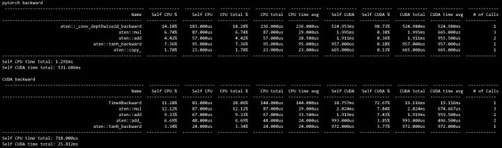 因此,我们可以用 CUDA 手写算子。实际测试,正向和反向速度可以 20x。
