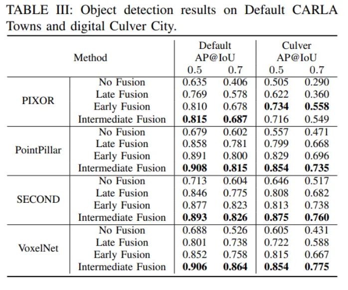 该数据集提供了4种不同点云检测backbone, 4种不同多智能体信息融合的策略。四个点云检测器包含:PointPillar, SECOND, VoxelNet和 Pixor。