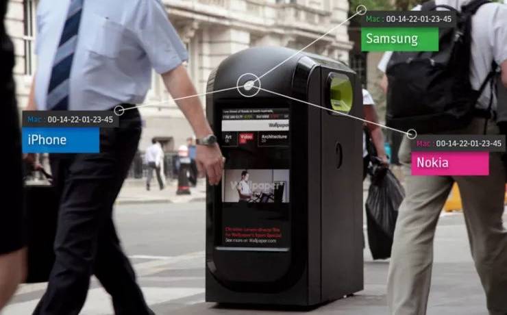 当然,各大城市也在一并搜集实时数据,这可就事关每个人的隐私。2013 年,名为 Renew 的伦敦公司就开启了一个试验项目,它们将传感器安装在垃圾箱里,追踪路过行人的手机 WiFi 信号。