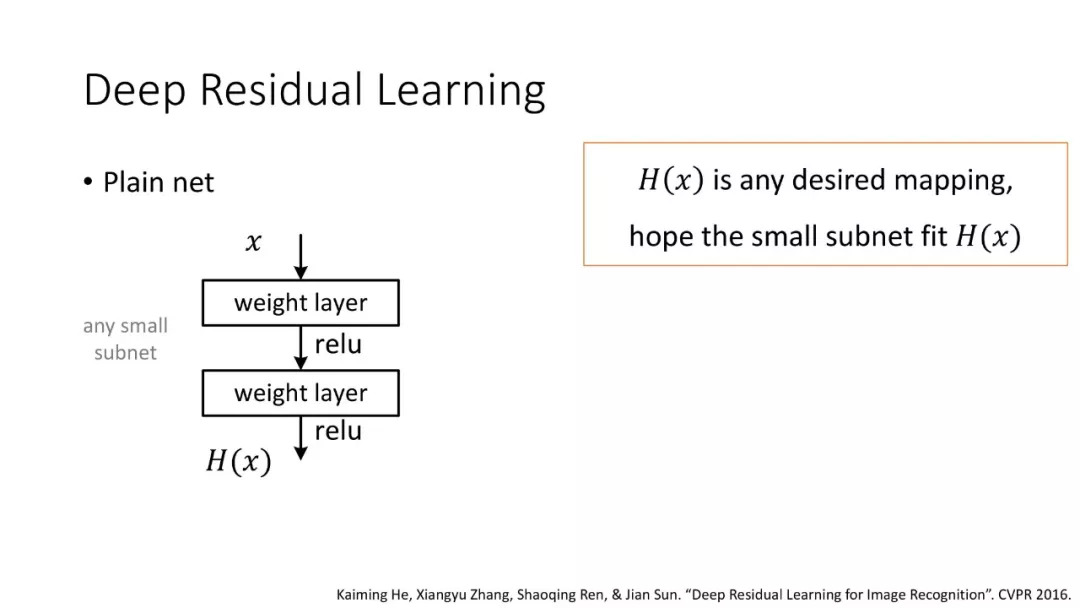 H(x) 是任何想要的映射,希望subnet符合H(x)