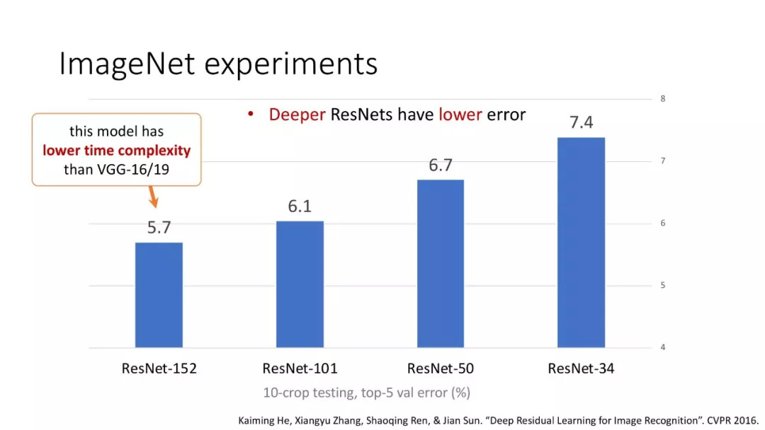 更深的ResNets具有更低的训练误差,并且还可以降低测试误差