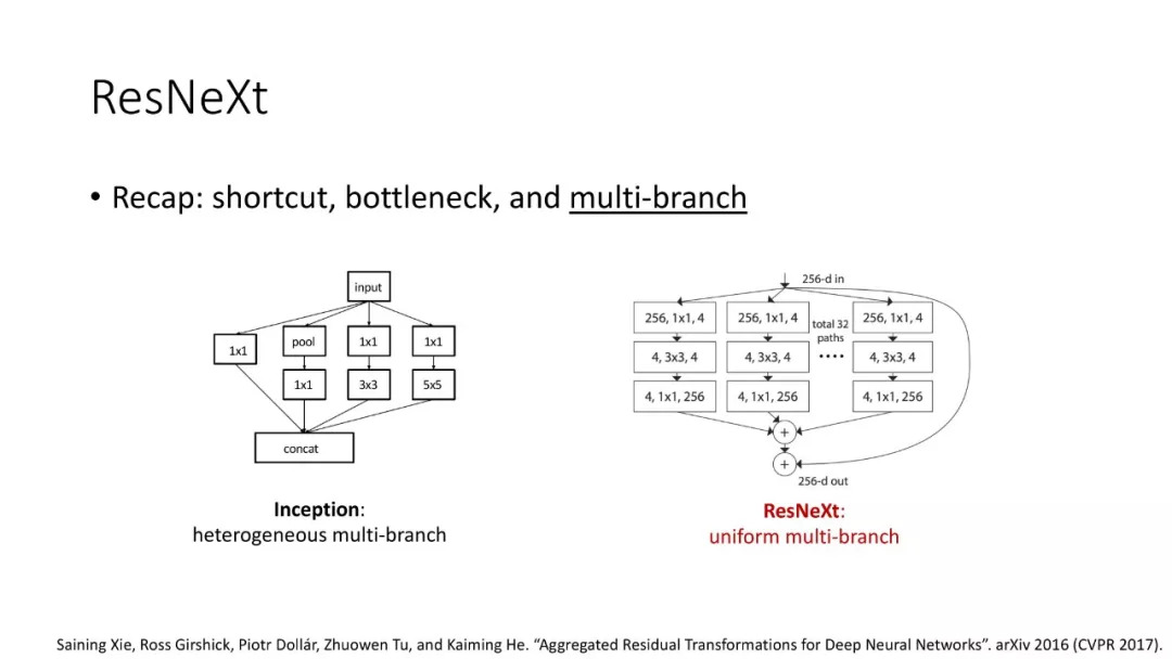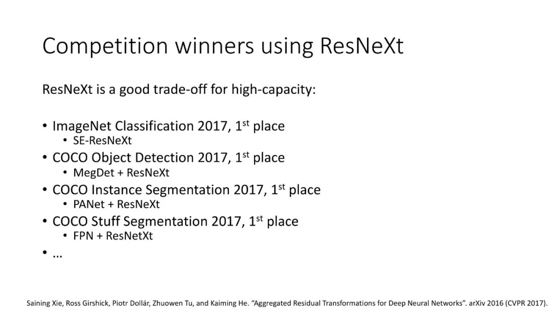ResNeXt:准确率更高,在各类竞赛屡获冠军