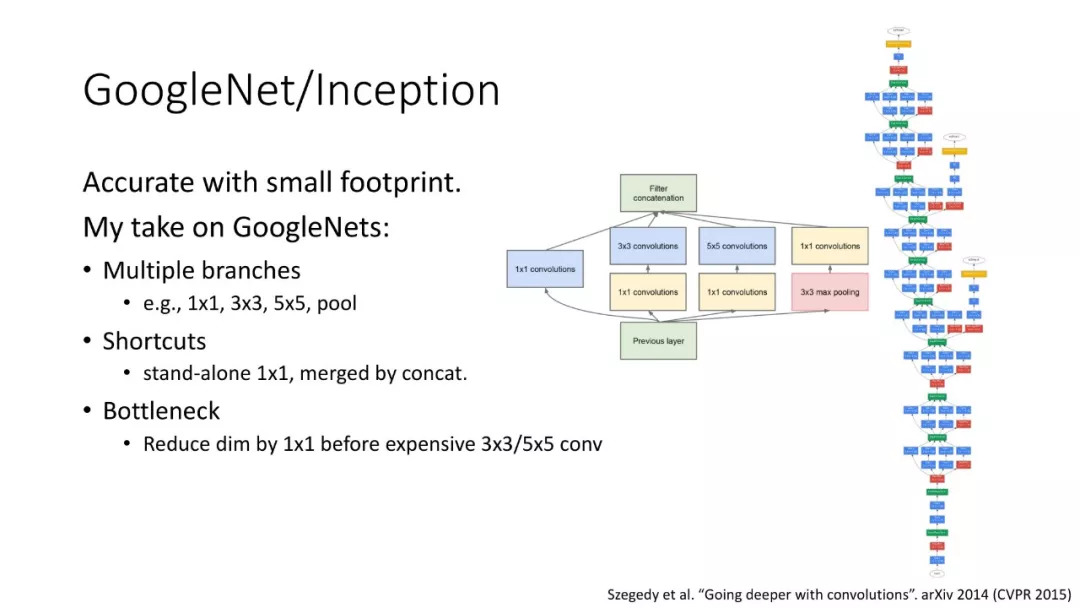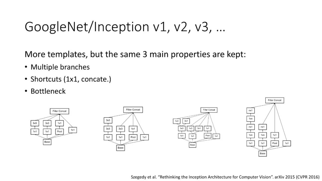 GoogLeNet有很多版本,但有3个主要属性是不变的: