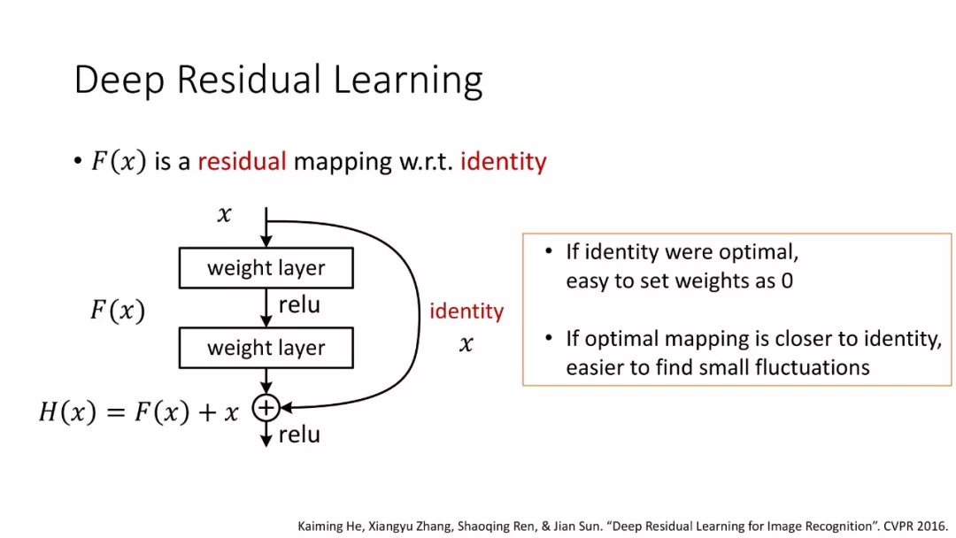 在这里,F(x)是一个残差映射,与它相关的是identity