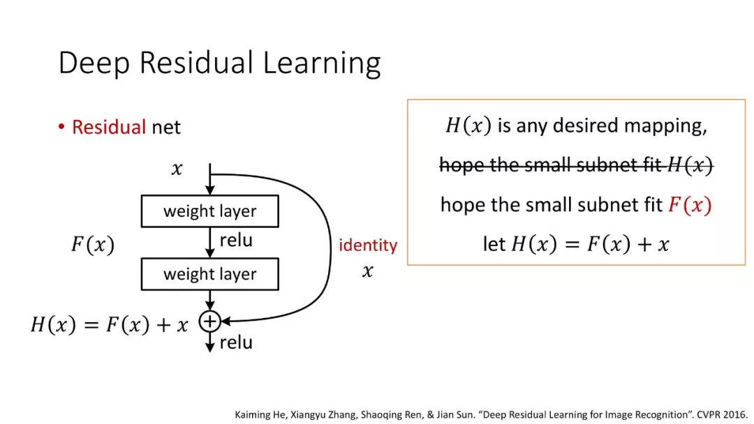 同样,H(x) 是任何想要的映射,但我们希望subnet符合F(x),即